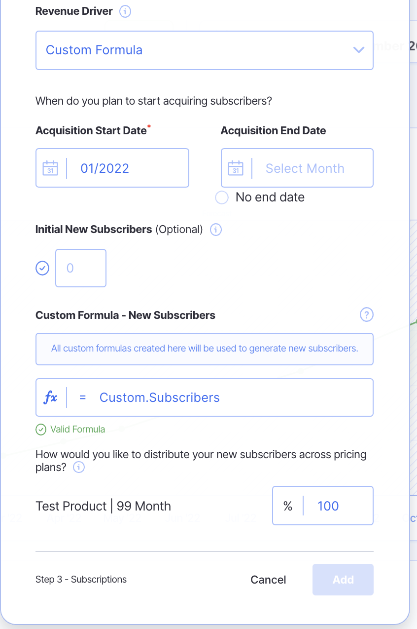 9: Enter the Acquisition Start Date and the following in the custom formula bar: