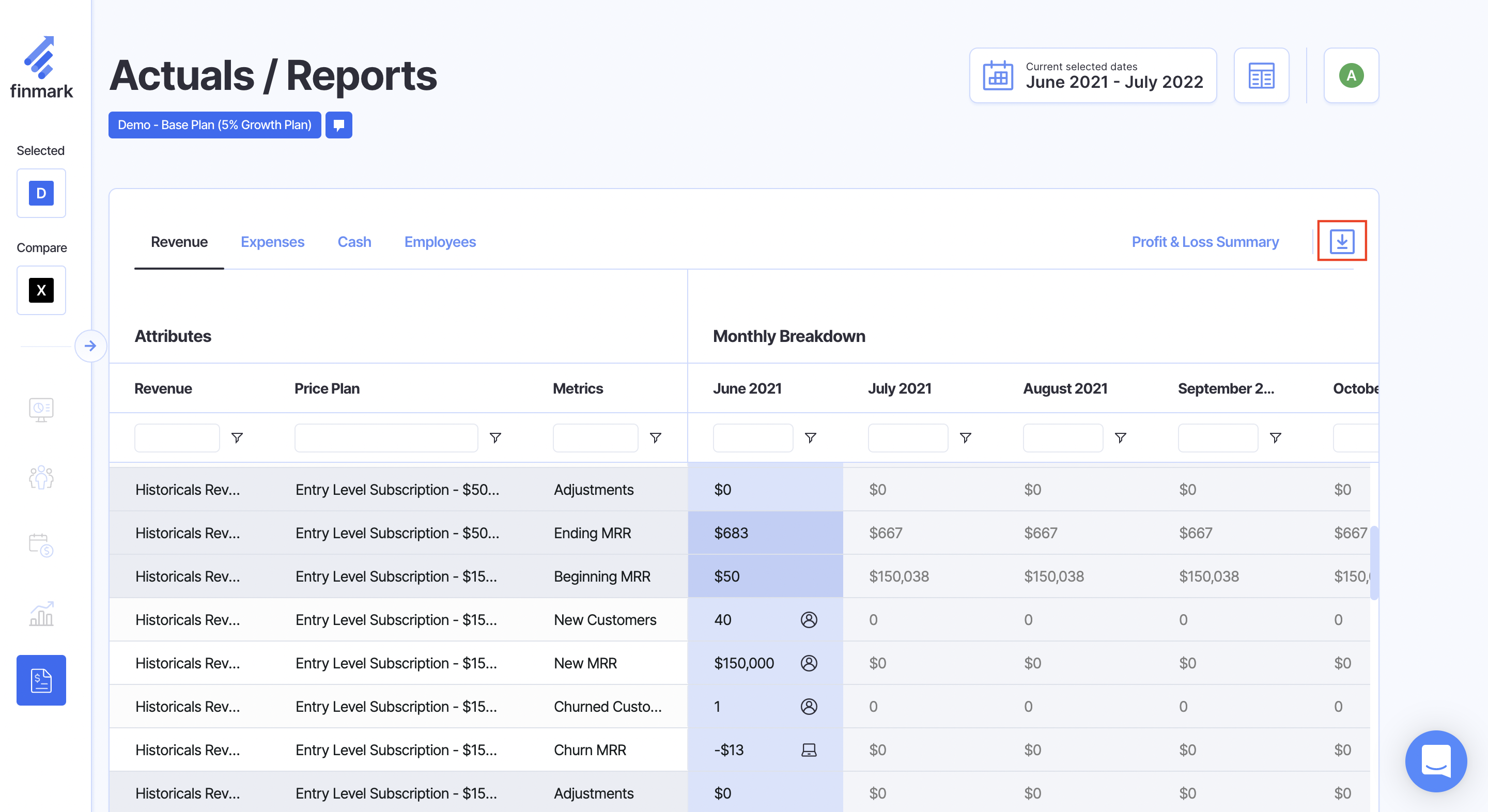 You can download/export any chart in Finmark that has an icon shown in the image below.
