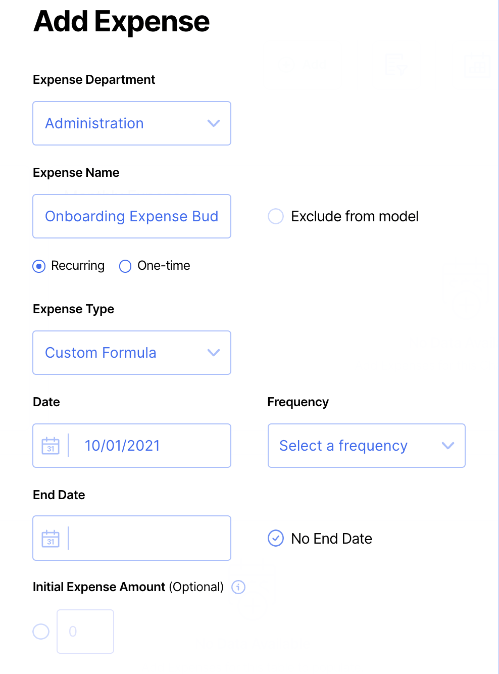 For this example, we will focus on setting an expense budget for Onboarding New Hires.