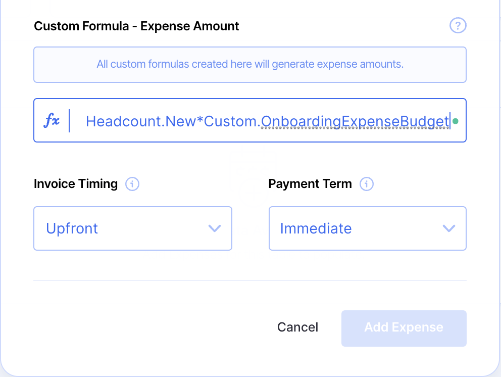 Fx: Headcount.New*Custom.OnboardingExpenseBudget