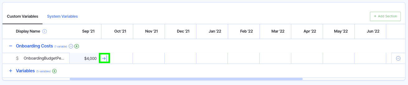Step 3: Enter the Variable Amount, then click the arrow to cascade through the following months.