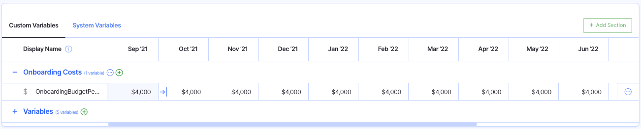 From here, we were able to use our Custom Variable and System Generated Variable to build a formula to forecast our budget for onboarding new employees.