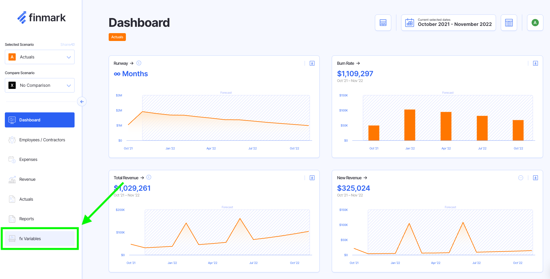 With custom formulas, your churn rate can be variable across time. To do this in Finmark, you can use utilize a custom variable in the fX Variable Section of Finmark.