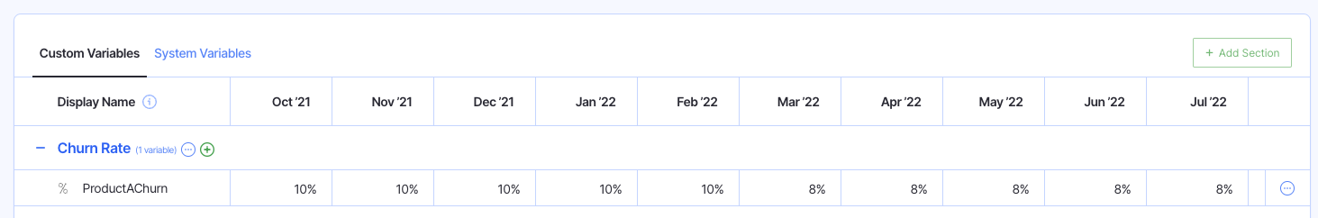 Now, any other changes you want to make to churn for your forecast can be made directly in the custom variables screen.