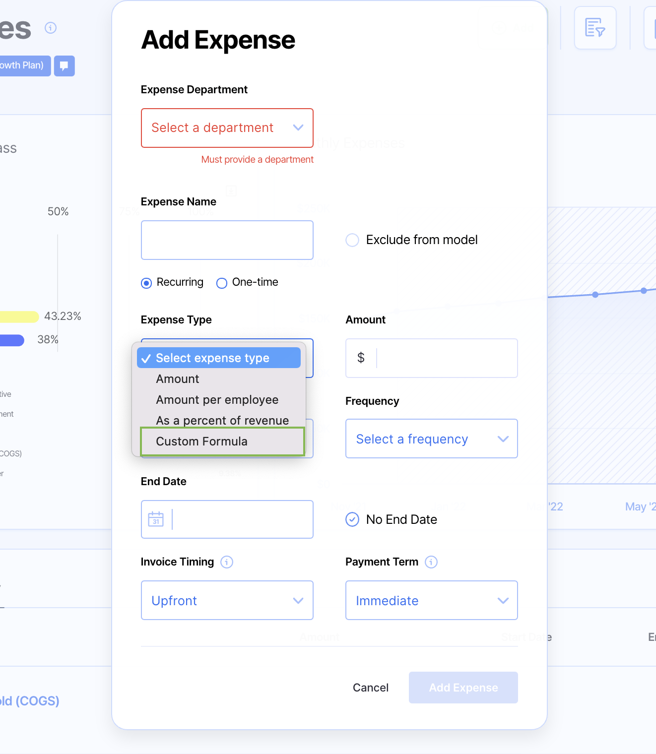 Step 3: Select Expense Type = Custom Formula