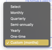 This feature can be used to capture Revenue collection terms that are outside of the normal, monthly, quarterly, semi-annual and annual options. An example of this is 2, 4 or 7 month terms
