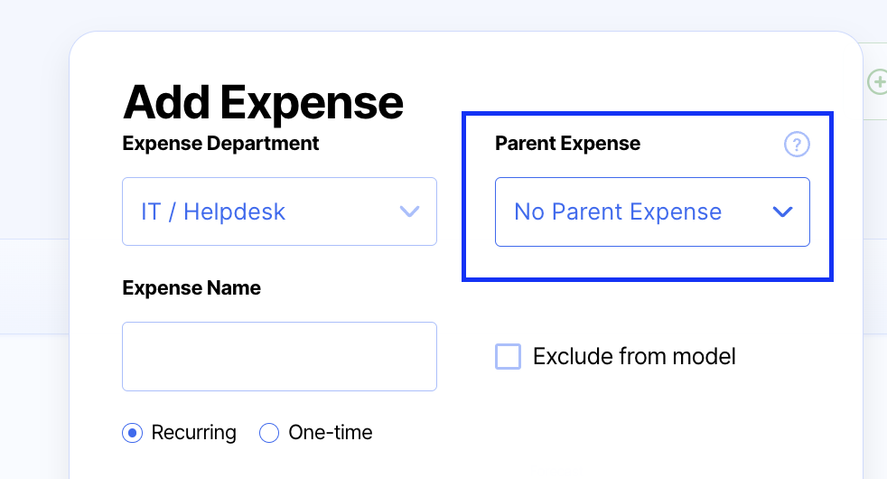Step 1: Click +Add Expense, from the Add Expense Pop-Up you will see the option to add a "Parent Expense"