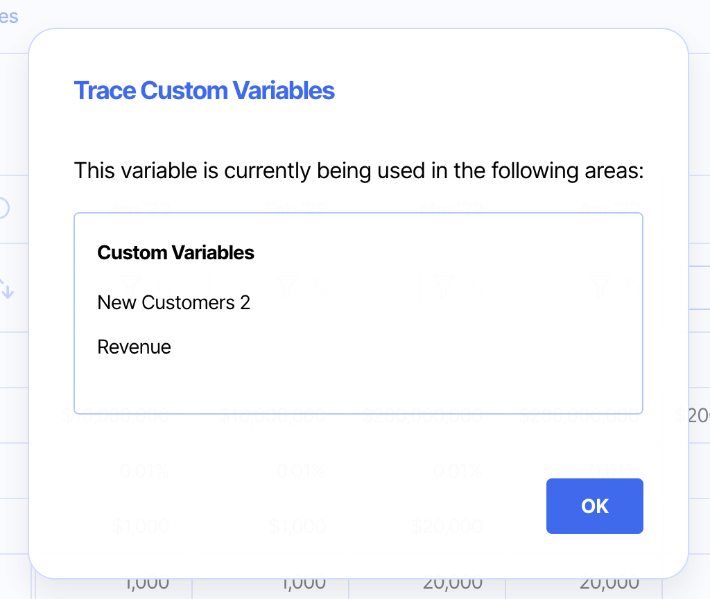 Step 3: A pop-up window will appear telling you where the variable is being used: