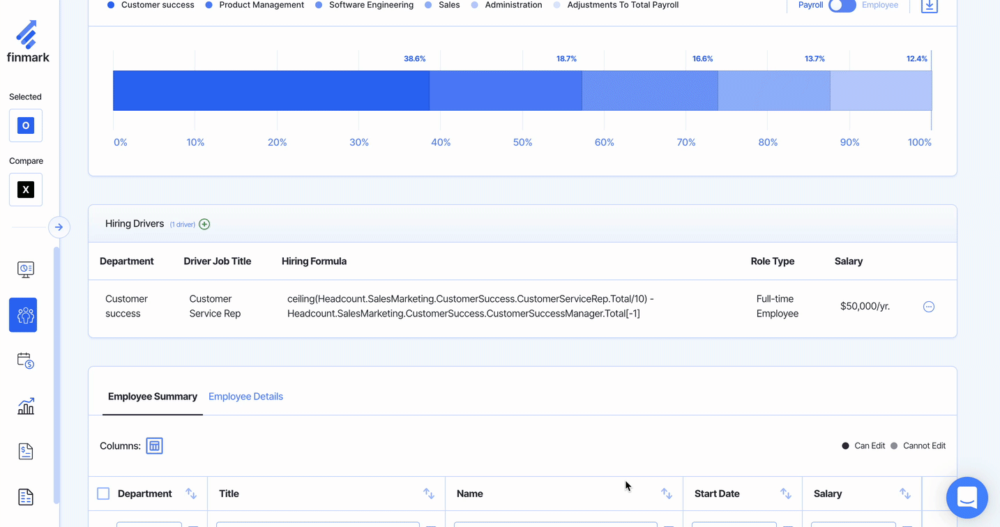 The employees/contractors section is designed to allow you to focus on your hiring plan and your payroll budget with carefully selected charts, graphs, and detailed views of your hiring plan. In this article, we will walk you through how you can navigate through the details of your employee/contractor section.