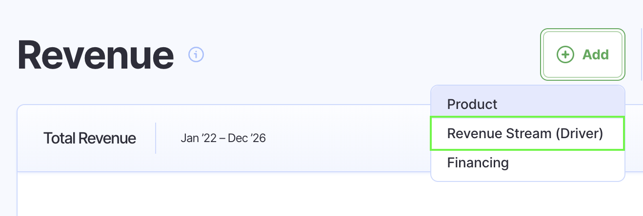 Step 1: Click +Add -> Revenue Stream (Driver)