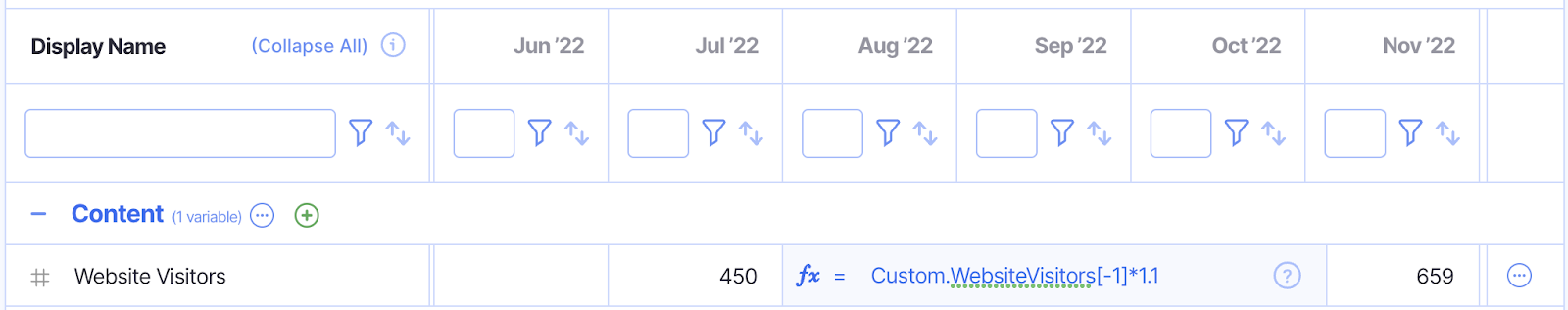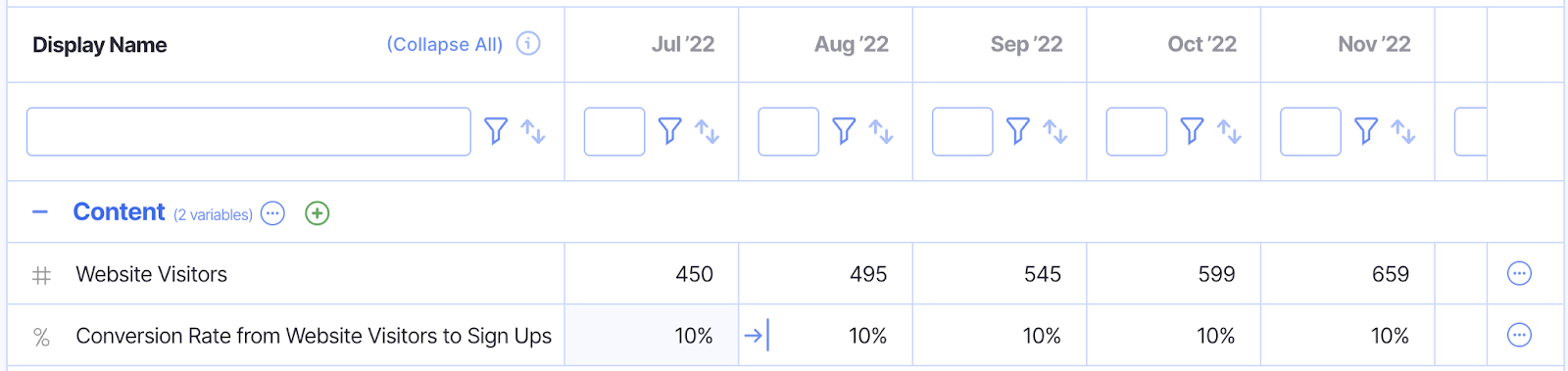 Fx = Custom.WebsiteVisitors*Custom.ConversionRateFromWebsiteVisitorsToSignUps