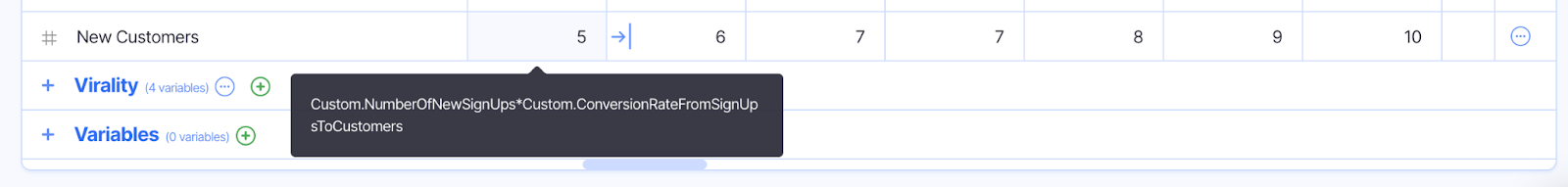 Custom.NumberOfNewSignUps*Custom.ConversionRateFromSignUpsToCustomers