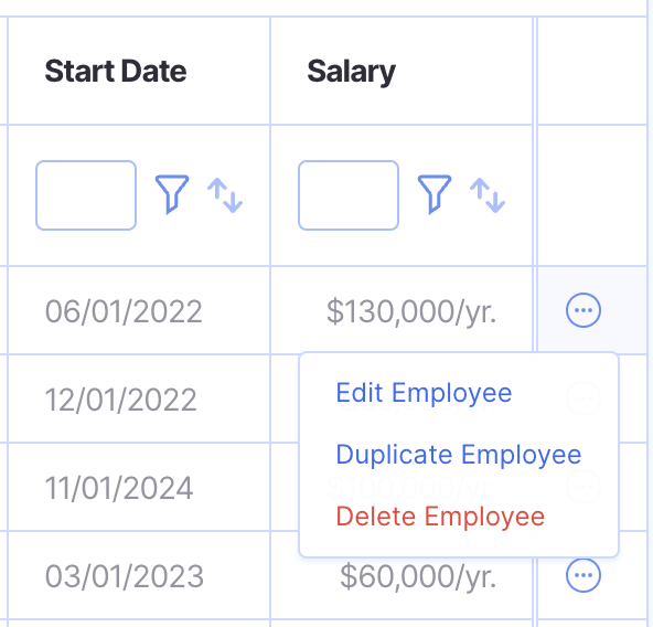 From here, you can either Edit, Duplicate or Delete the employee.