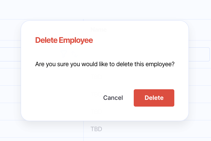 To delete an employee, click delete employee. From here, follow the prompts of the warning message.