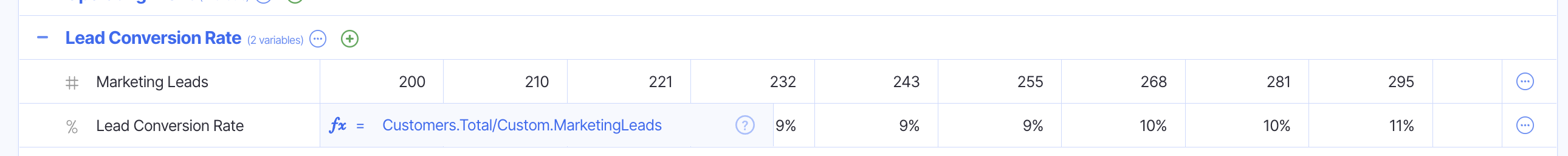 fx: (Expenses.SalesMarketing.Marketing.Total + Payroll.SalesMarketing.Marketing.Total)/Custom.MarketingLeads