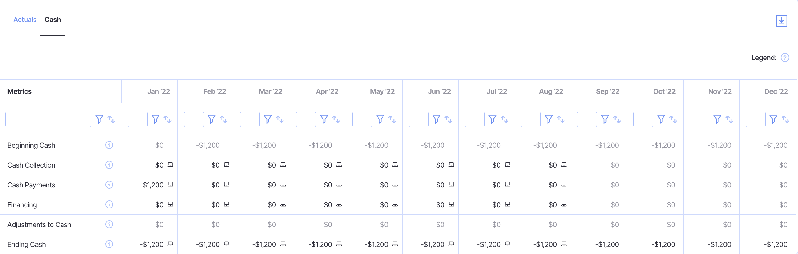 Cash Actuals: