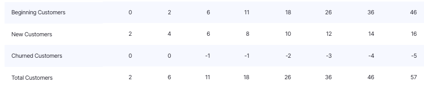 NOTE - I have used a formula to increase my company count by 2 every month, shown below: