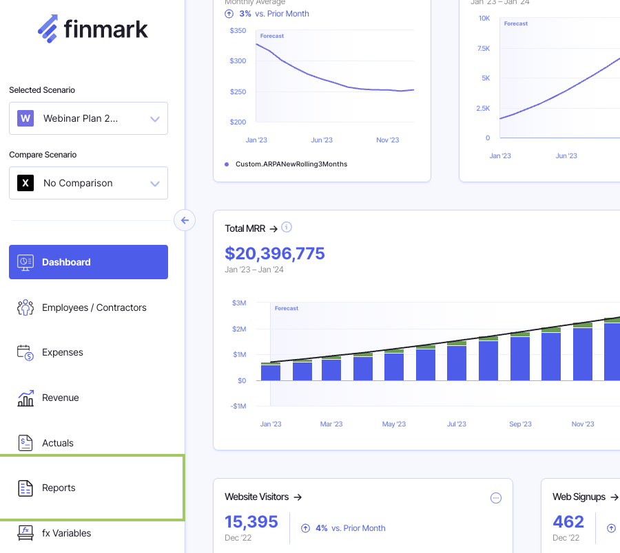 Please note that the Balance Sheet (“B/S”) and Cash Flow Statement (“CFS”) are intended to be used by advanced users who understand the intricacies of forecasting for these two statements. When you are already to work on your B/S or CFS, you can click on the Reports section in the navigation bar on the left: