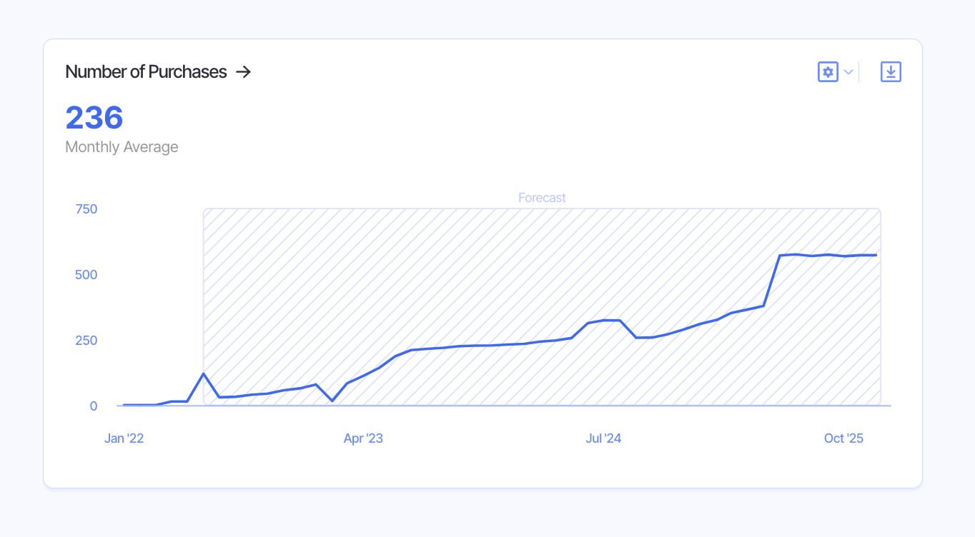 Click on the "meatball" icon to the right and add the metric to the dashboard as a Line Chart or Column Chart.