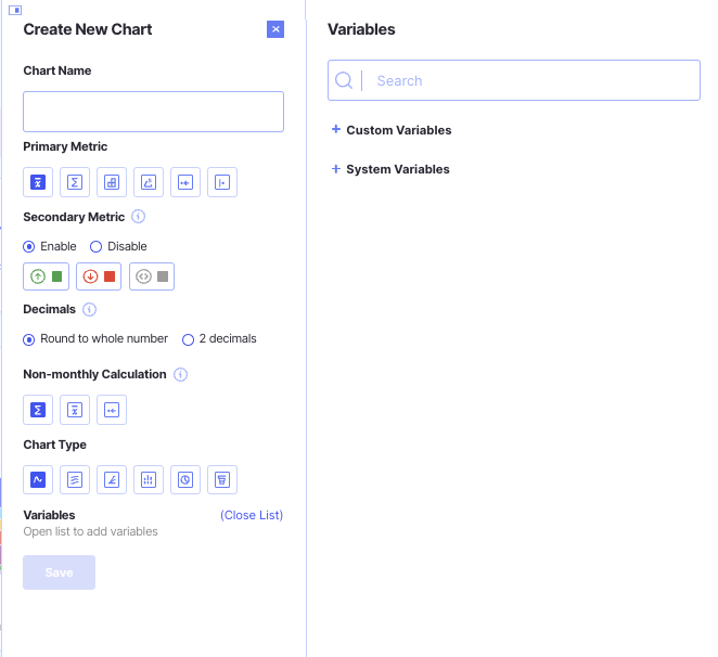 Step 2: Fill in the required fields such as Chart Name, Primary Display Metric, Chart Type, and the Data Source.