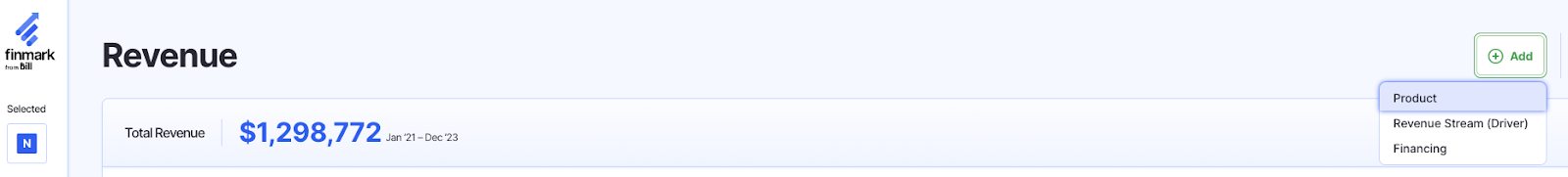 In order to complete revenue mapping, you need to create at least one revenue stream and, if required, at least one pricing plan. You can create revenue streams and pricing plans by using the Add button at the top of Revenue section screens.