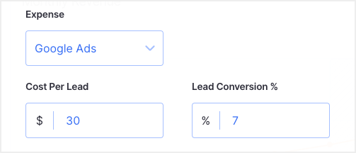 For our example, our assumptions are going to be based on how our marketing campaign performs. Specifically, how many leads and revenue they drive.