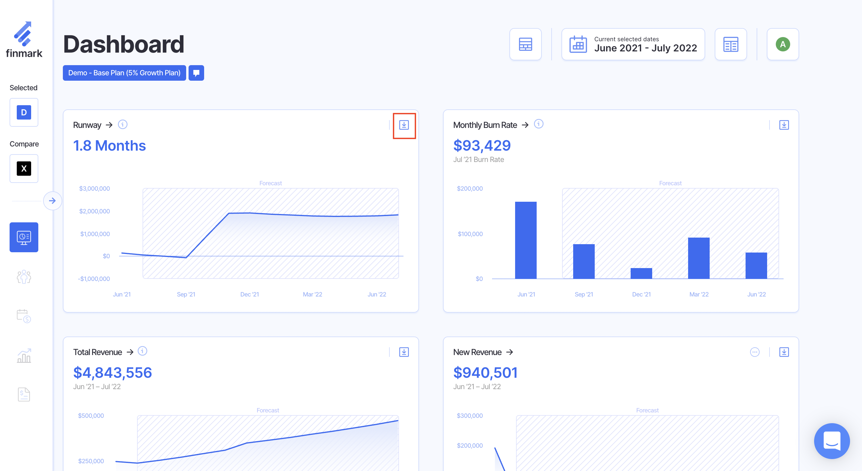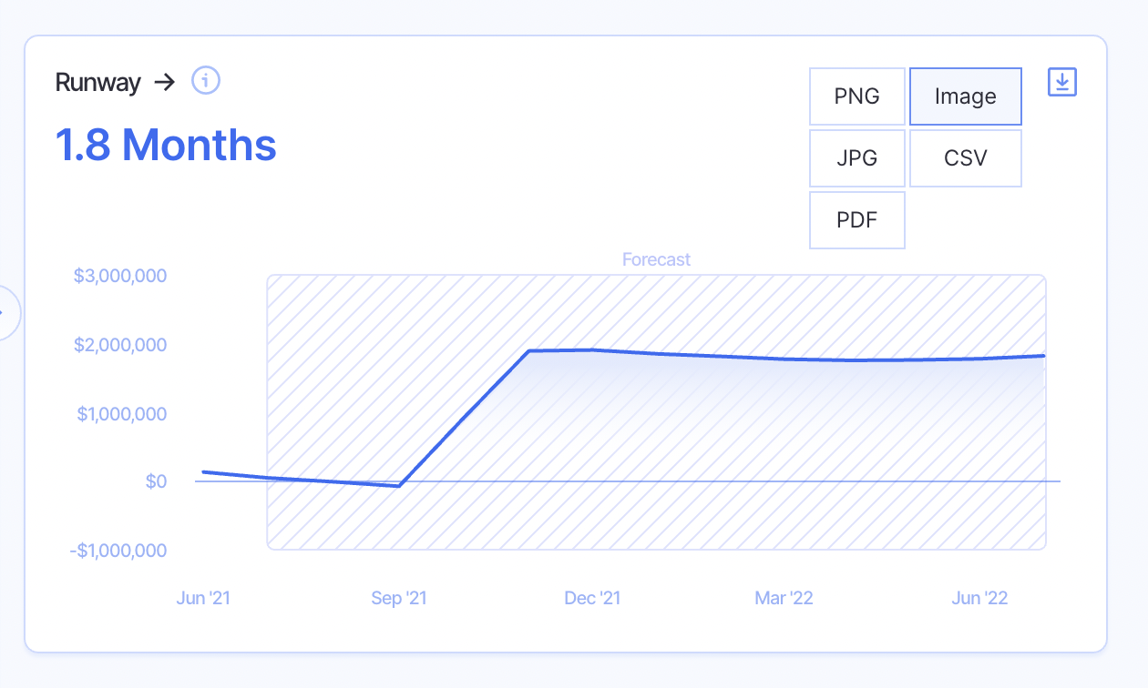 You can download/export any chart in Finmark that has an icon shown in the image below.