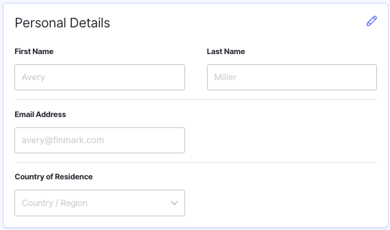 You can update the company details by clicking on the pencil in the top right hand corner. The following information is required to become a Finmark Customer: