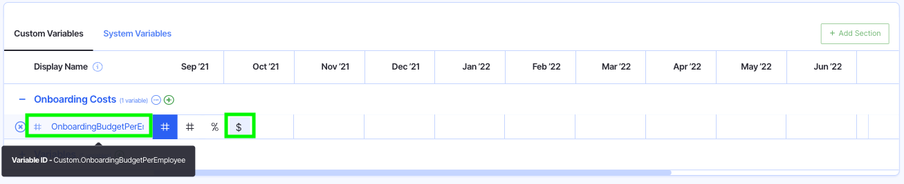 From here, we were able to use our Custom Variable and System Generated Variable to build a formula to forecast our budget for onboarding new employees.