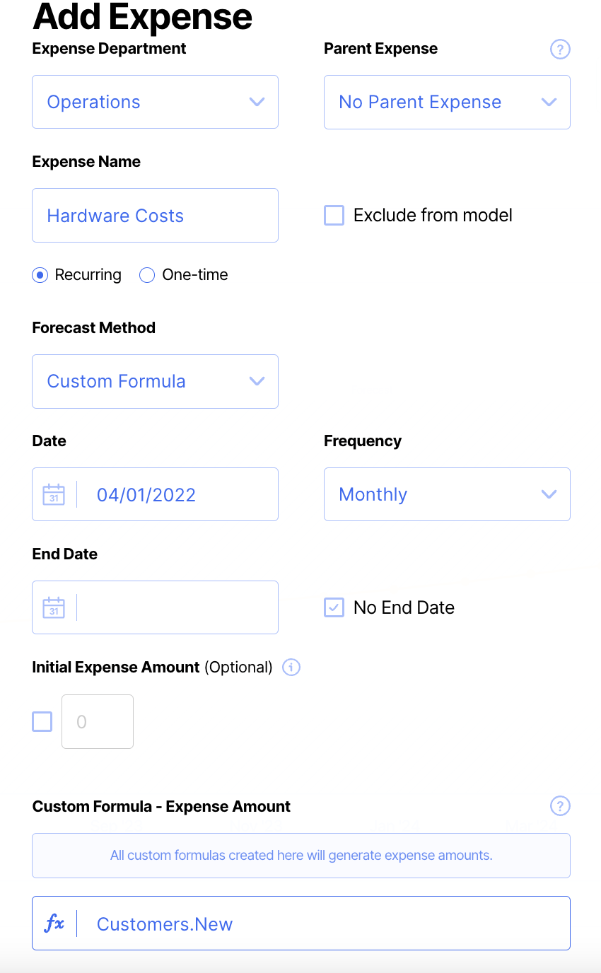 Step 3: Enter the expense details and select Custom Formula for the Expense Type.