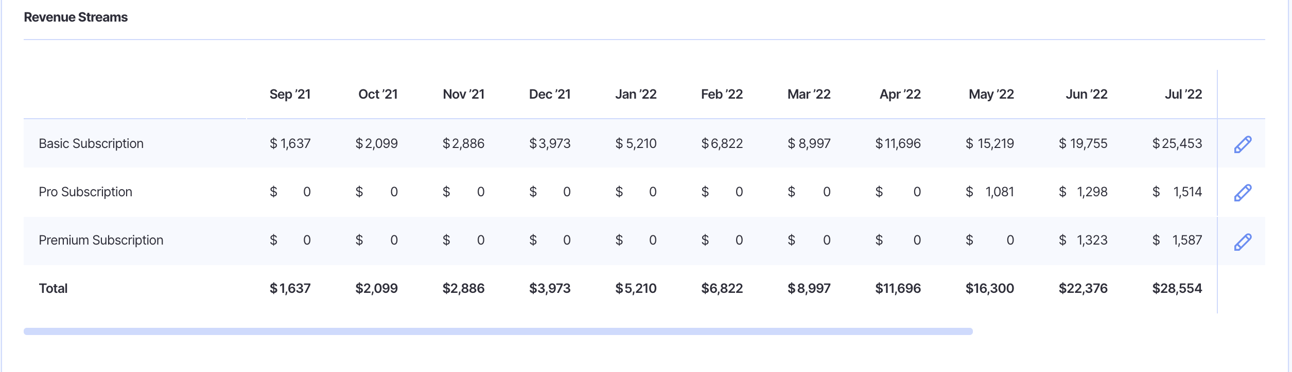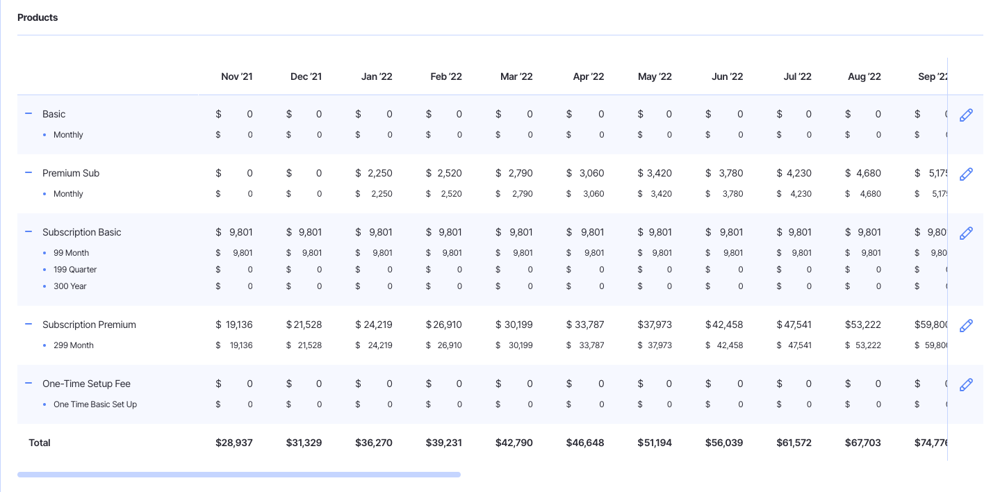 Once saved, you'll see that the revenue has been adjusted for all future months: