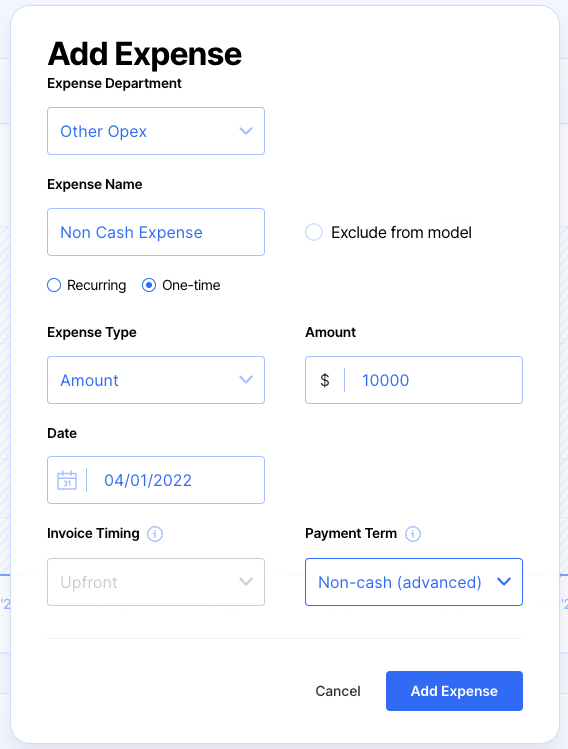 In this article, we will walk you through how to use Non-Cash Expenses and Payment terms to further customize your financial model.