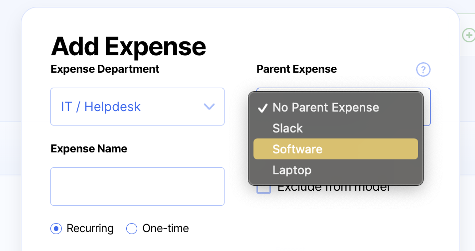 A common example of this is listing multiple types of subscription costs, under a single parent software expense. Follow the steps below to learn how: