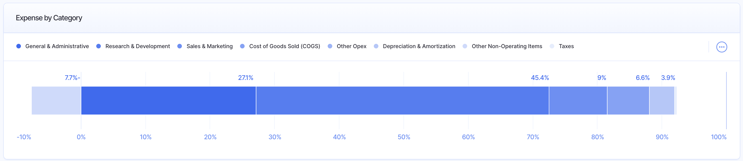 The Expense by Category provides visibility in your total spend as a percent of category for the calendar dates selected. Use this chart to understand how much your total budget is allocated for each category.