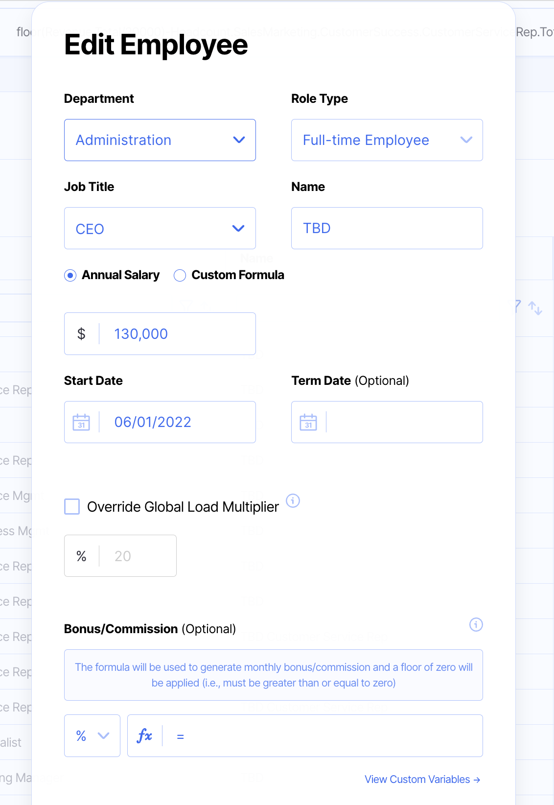 Click "Edit Employee" and then fill in the fields you are editing, then click save. The Edit Employee pop-up will look like the image below: