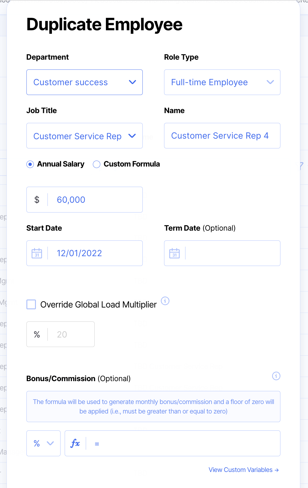 If you are duplicating employees, click the "Duplicate Employee Tab" from here, and a new screen will appear where you can enter the new employee details and click add employee.
