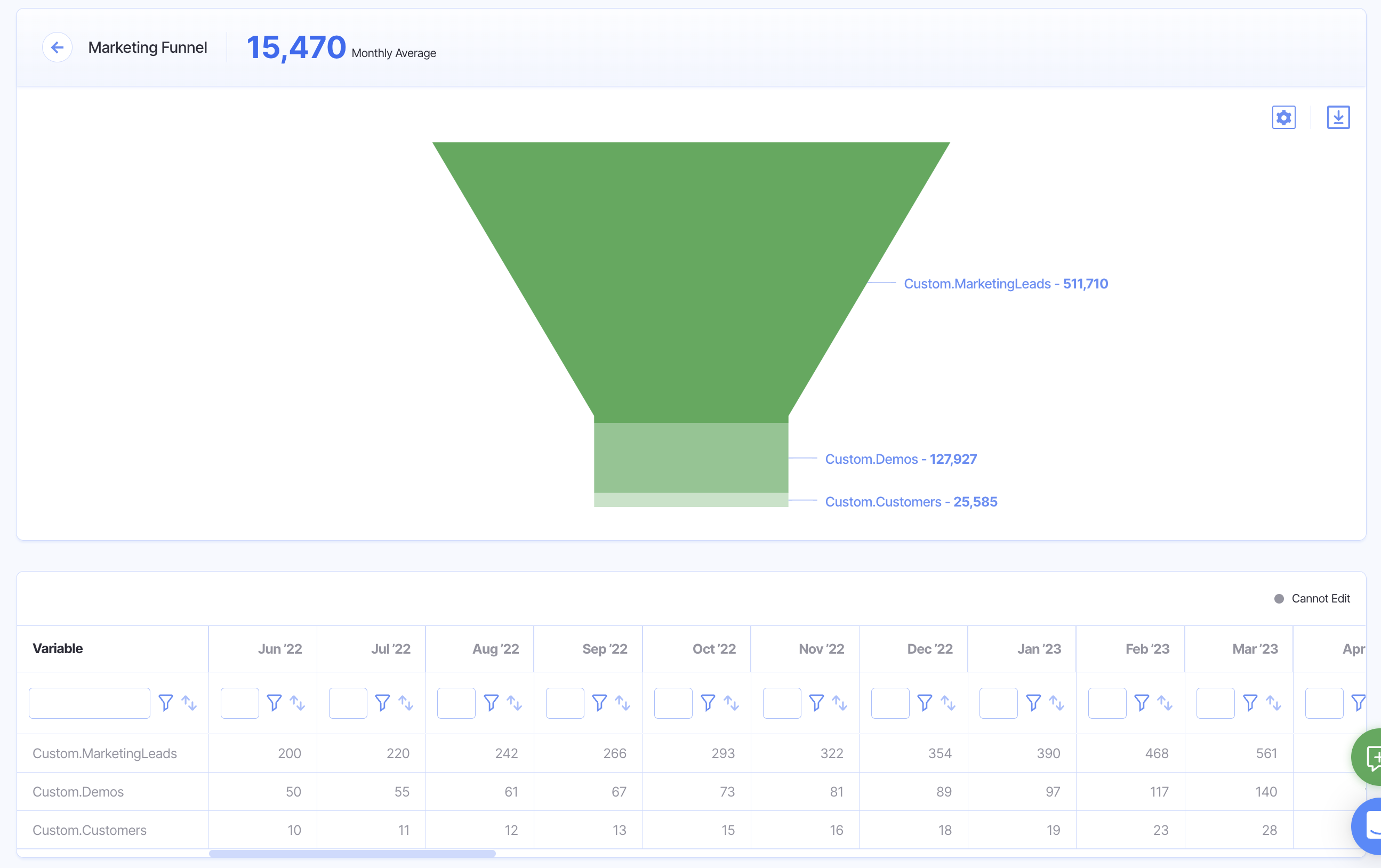 Marketing Funnel: Marketing Leads > Demos > Customers