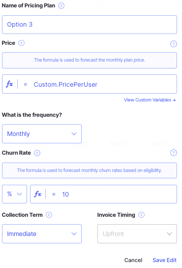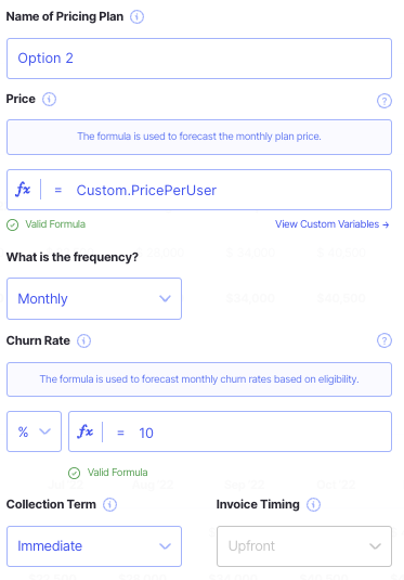 NOTE: If you are wanting to test different pricing assumptions or if your price is set to change over time, we suggest adding a pricing variable.