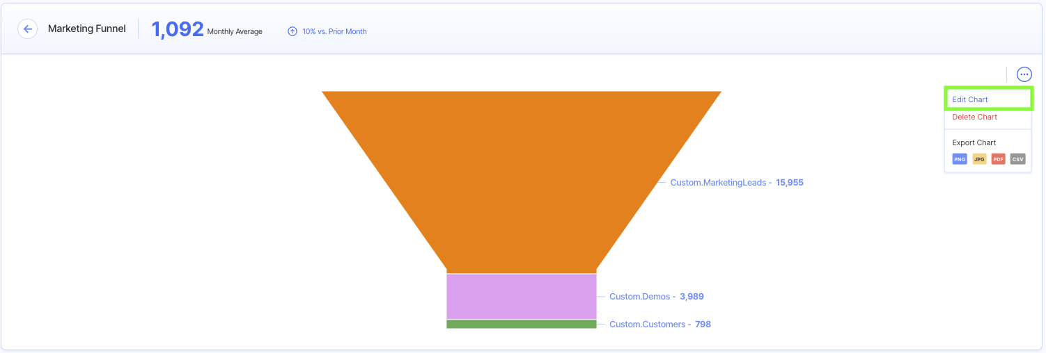 To edit an existing chart, click the 3 dots icon in the right-hand corner of the chart.
