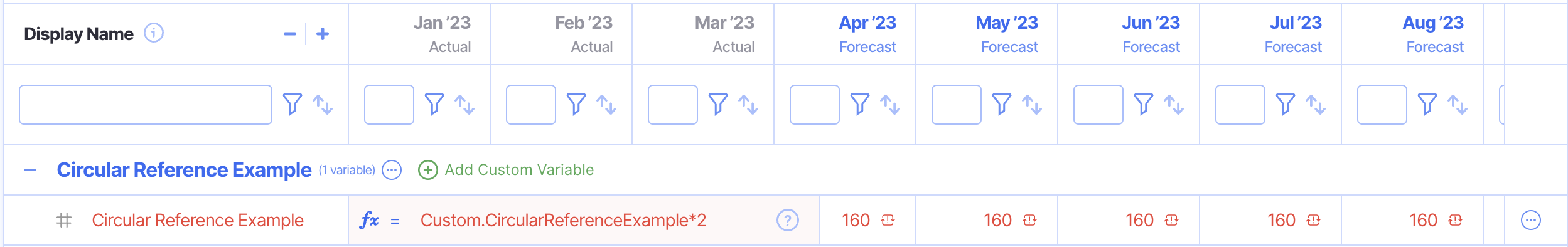 When a circular reference occurs, you can fix this by referencing a past date or referencing a different variable in the formula. See example below: