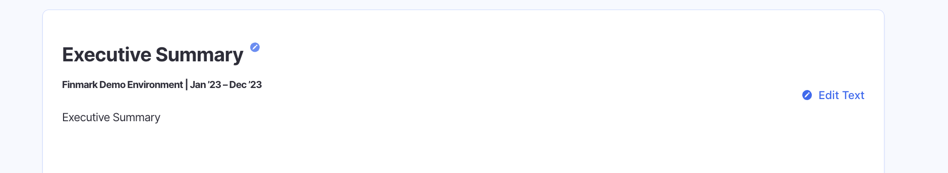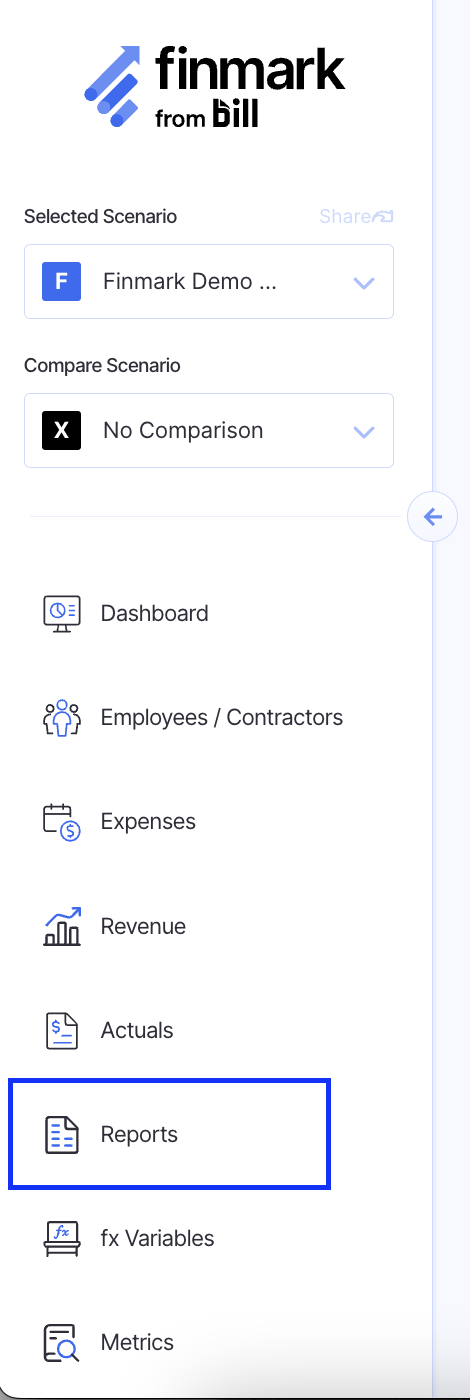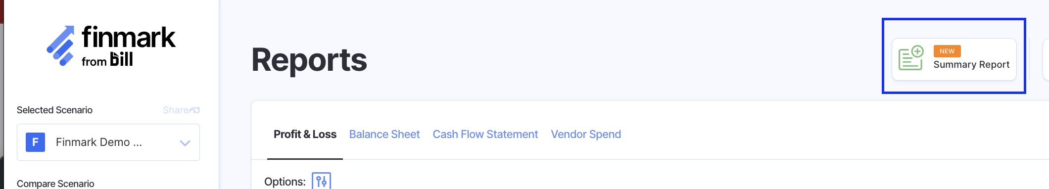 The Financial Summary Report is an automatically-generated report that can display past or forecasted financial data from your Finmark account. The Summary Report contains six sections: Cover Page, Disclaimer, Executive Summary, Profit & Loss, Balance Sheet, and Cash flow Statement.
