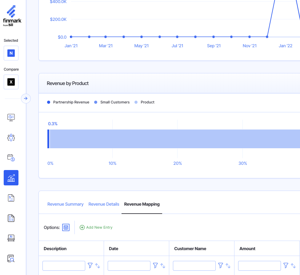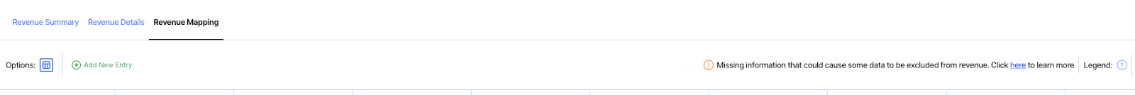 Revenue mapping is the process by which raw data from external revenue platforms is placed into revenue streams and product plans, if applicable. You can find the Revenue mapping screen from the Revenue page in the tab called Revenue Mapping.