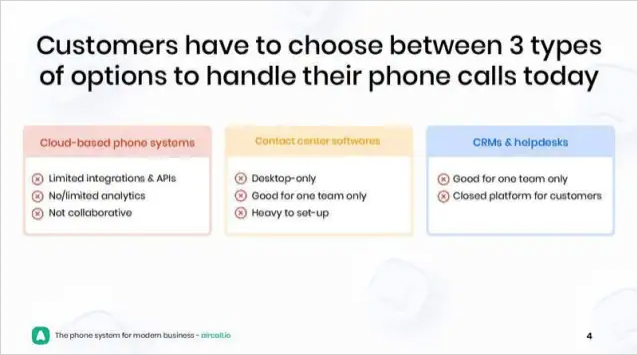 Aircall’s pitch deck is a great example of a deck that’s well designed, which makes it easier for founders to pitch and for investors to read through.